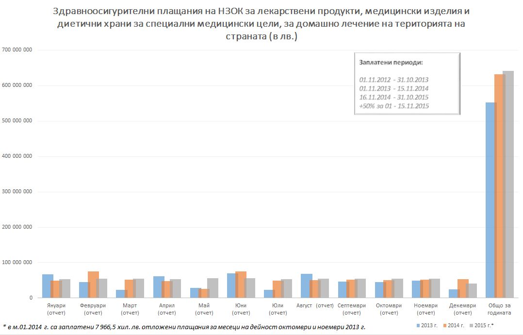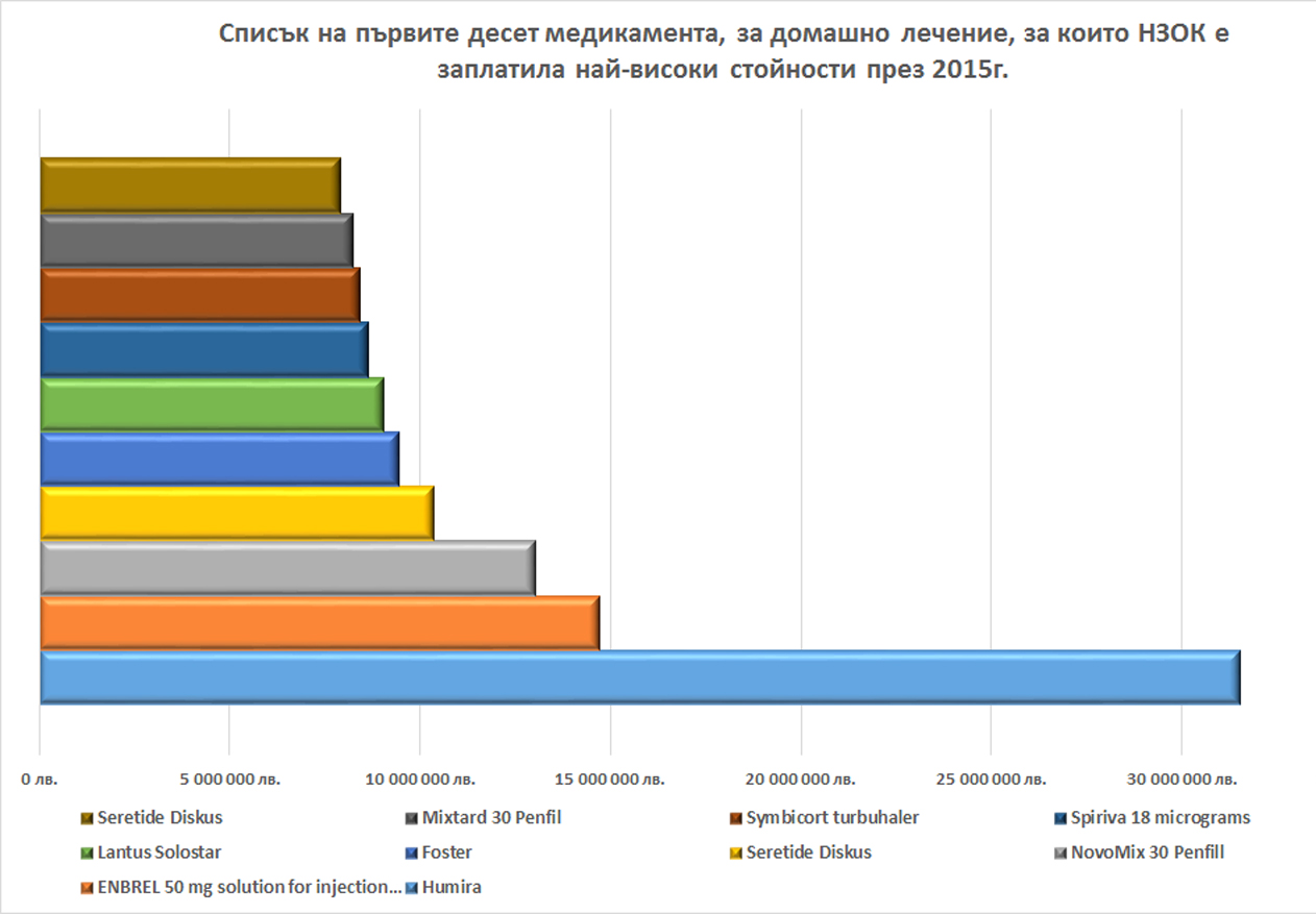 Основна част от увеличението се дължи на иновативни лекарствени продукти, които са скъпа лекарствена терапия. Преглед на справките показва, че през 2014 г. НЗОК е заплатила 9 милиона лева за медикаменти, включени в позитивния списък в предходната година, а през 2015 г. разходът за същите тези продукти е нараснал до 28 млн. лева или повече от три пъти. Тоест – броят на болните, които ги ползват, се е утроил.